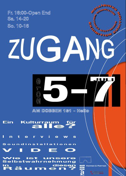aRaum fördert:Zugang“ (05 – 07.07.2019) ein Vermittlungsmoment einer einjährigen Forschung eines studentischen Seminars zum Thema „Kulturraum für alle?! ästhetische Forschung in der autonomen Kulturarbeit“. Die Eröffnung findet am Freitag den 05.07.2019 um 18 Uhr am Dobben statt.