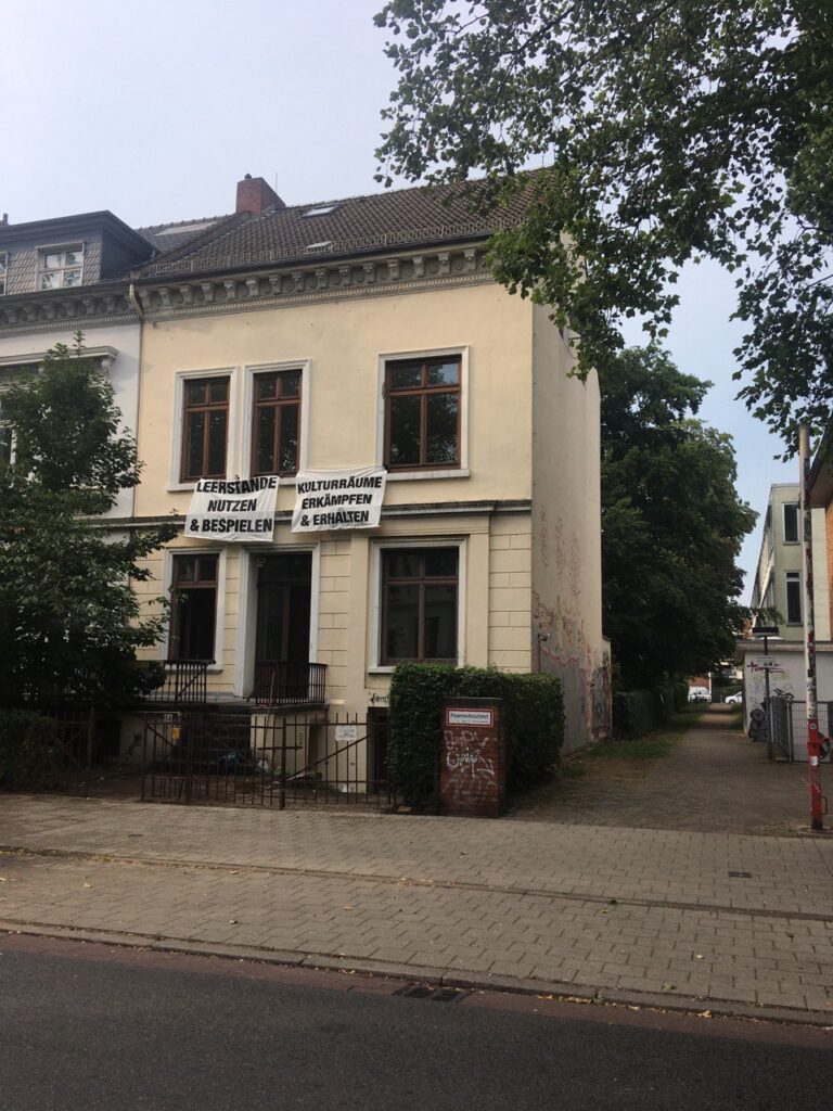 Anno 1880. Zwischennutzung nach fünfjährigem Leerstand und aktuell in städtischer Hand. Es wird vorrausichtlich ein Jahr lang von August 2020 bis August 2021 von aRaum zwischengenutzt. Es wurde vor dem Leerstand vom nebenan liegenden städtischen Gesundheitsamt genutzt. Als letztes wurde es vom Hausmeister des Gesundheitsamtes bis 2015 bewohnt. Seitdem stand es leer. Davor wurde einzelne Räume als Büro benutzt. aRaum nutzt das Gebäude als zentraler Ort für den Verein und das Kollektiv, also zum Plenierort, Lagerstätte aber auch als Veranstaltungsraum.