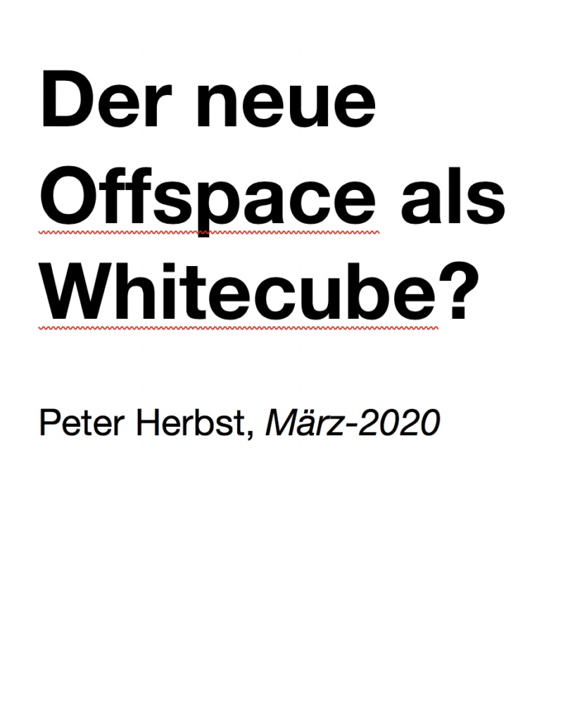 Eine kritische Bestands- und Stellungnahme zur aktuellen Situation sogenannter Offspaces in der Kunst- und Kulturszene. Verfasst von Peter Herbst (peterherbst.eu) und veröffentlicht durch Peter Herbst & dem aRaum (Kollektiv).
