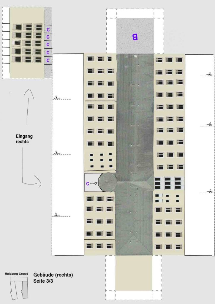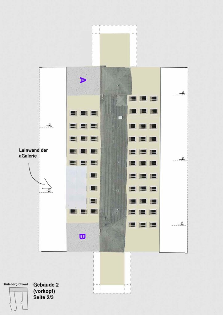 aRaums erste Veranstaltungen fanden in der Hulsbercrowd im mittlerweile abgerissenem und durch einen Parkplatz ersetzten Schwesterwohnheim am „Am Schwarzen Meer 142“ statt. Zum Erinnern und Trauern haben wir ein Modell der Hulsbergcrowd erstellt.